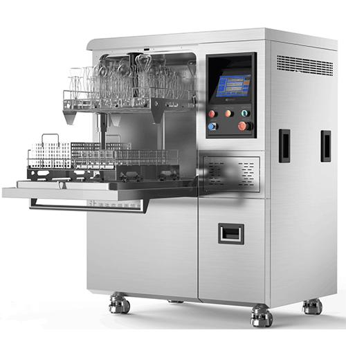 Load the laboratory utensils onto the container loading basket, load them into the inner cavity of the cleaning machine through the slide rail, remove the pollutants (including organic matter, inorganic compound, protein, etc.) on the containers through the cleaning steps, and clean the residues on the containers; Remove pollutants and cleaning agent residues on the utensils through rinsing steps, so that the ion residue on the utensils is lower than the detection limit. Remove cells, viruses, and bacterial residues on the utensils through disinfection steps, reducing the number of live microorganisms to the specified level; Remove residual water on the surface of the vessel through a drying step, allowing the residual water to vaporize and evaporate.